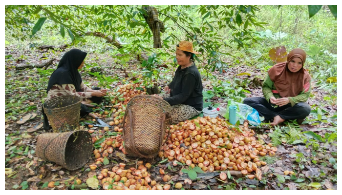 Ibu Nurbaya beserta warga lainnya sedang berada di kebun miliknya yang terletak di Desa Sukarela Jaya. Foto: Aan Arsad/ Jagakampung.net