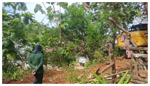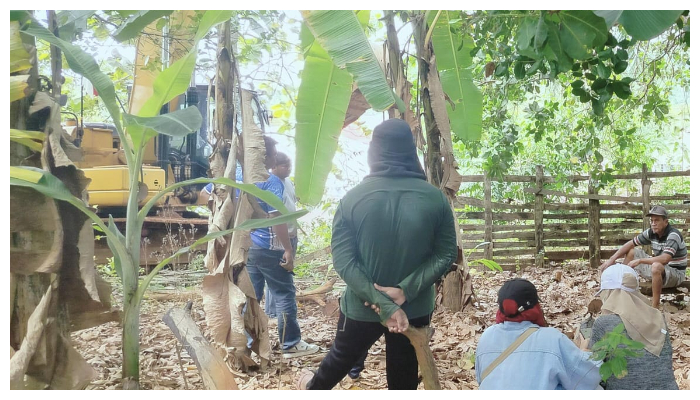 Tamrin protes atas aktivitas ekskavator di belakang rumahnya, 29 Agustus 2025. Foto: Hermina/Jagakampung.net
