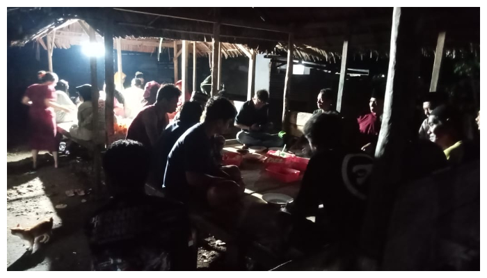 “Inilah yang buat kami menolak kehadiran tambang, tanpa tambang kami sudah sejahtera, alam kami kaya, laut ada ikan, di hutan ada ubi, sayuran, semua tersedia,” ucap warga lain sambil menikmati hidangan yang tersaji.